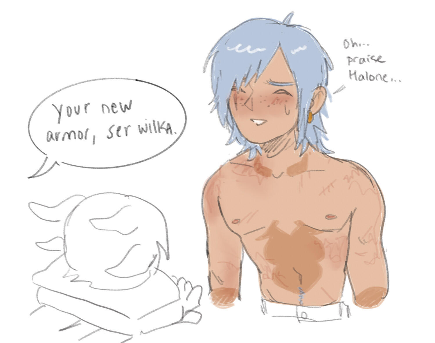 NO BIGOTRY! Me and my character are trans men! I will not tolerate any transphobia or homophobia directed towards me or my character. Wilka is played on a Fem Highlander model but that is not an excuse to misgender him! Racism will also not be tolerated regardless of whether it’s “in character” or not. ABSOLUTELY NO AI IN ART OR WRITING TOLERATED.